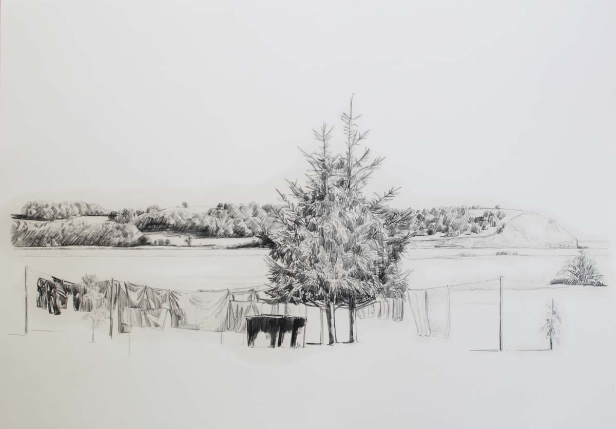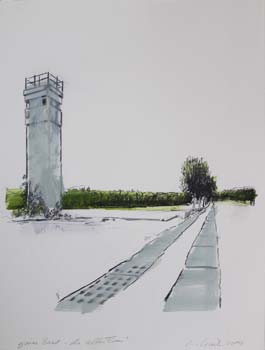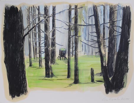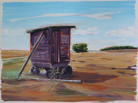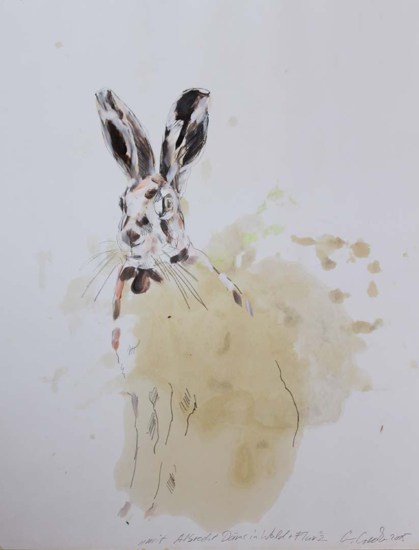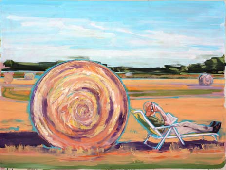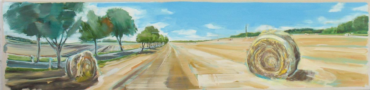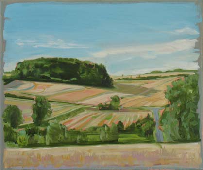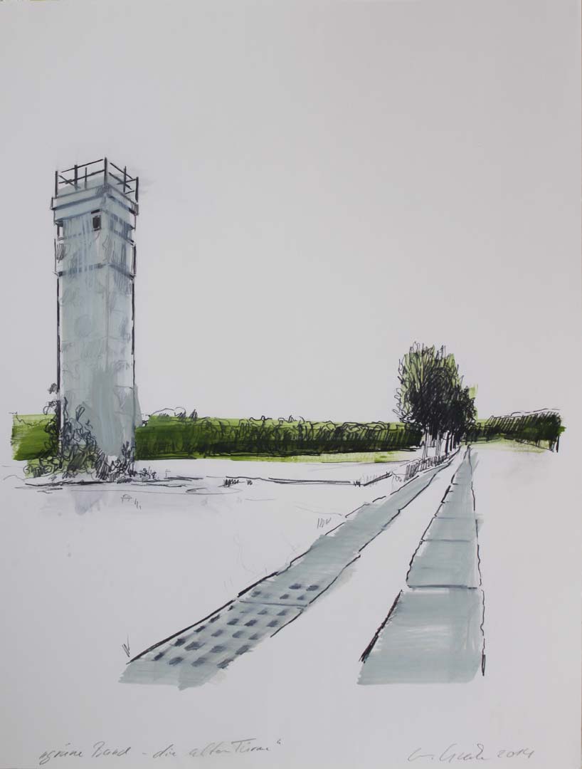 "Bei Gunther Grabe gehört zur Natur, zum "Landschaftlichen", durchaus der Hochspannungsmast dazu, der fast wie ein Solitär zum Protagonisten eines Gemäldes wird, oder der Heuballen, der je nach Saison auf den abgeernteten Feldern lagert und seiner Weiterverwendung harrt.”