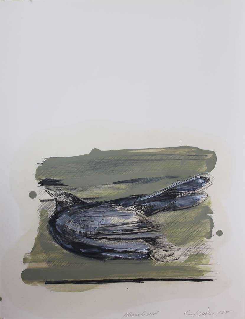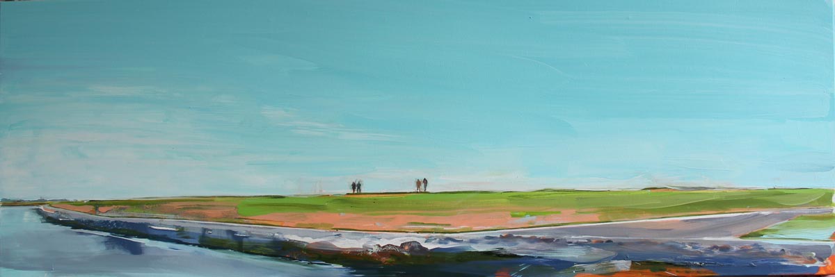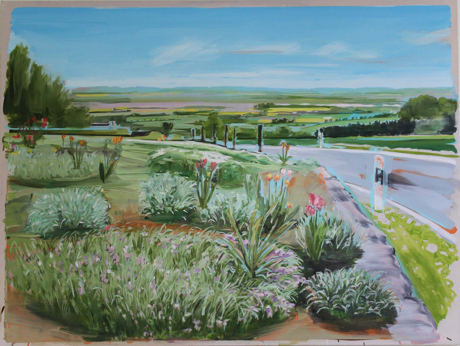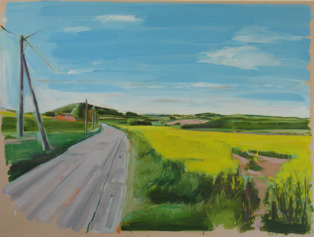 "Bei Gunther Grabe gehört zur Natur, zum "Landschaftlichen", durchaus der Hochspannungsmast dazu, der fast wie ein Solitär zum Protagonisten eines Gemäldes wird, oder der Heuballen, der je nach Saison auf den abgeernteten Feldern lagert und seiner Weiterverwendung harrt.”